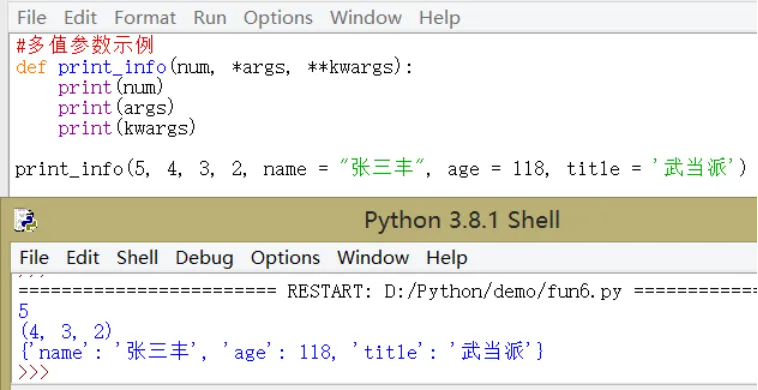 当函数需要处理的参数个数不确定时,可使用多值参数。Python有两种多值参数: