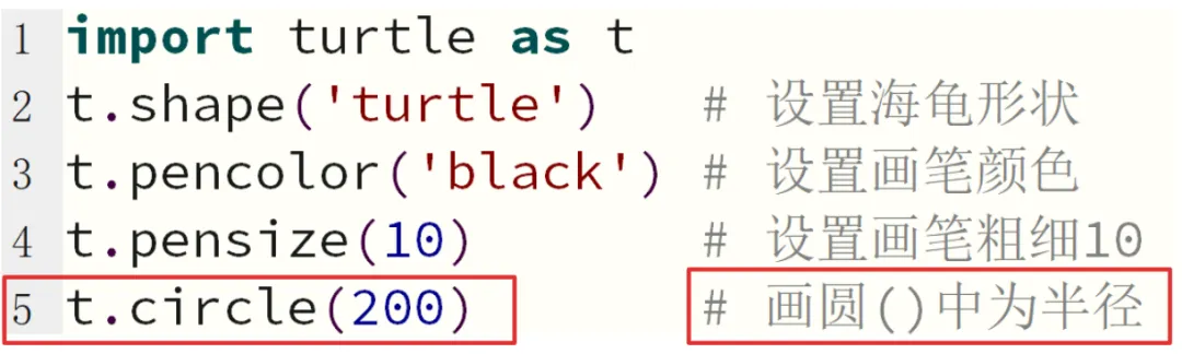 t.pensize(5) # 设置画笔宽度为5