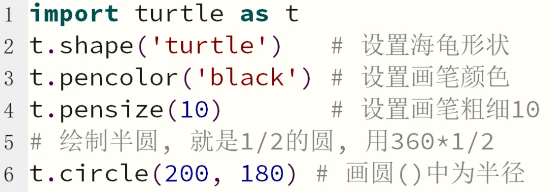 t.circle(200, 180) # 逆时针绘制小半圆