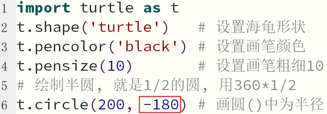 t.circle(400, 180) # 逆时针绘制大半圆