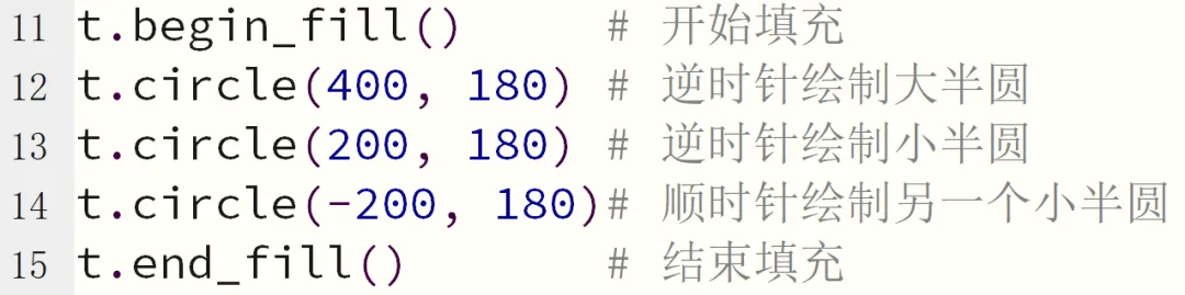 t.end_fill() # 结束填充