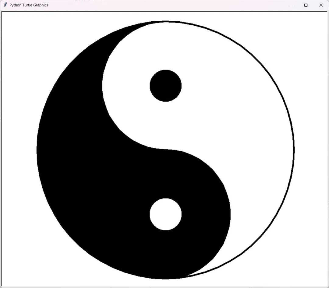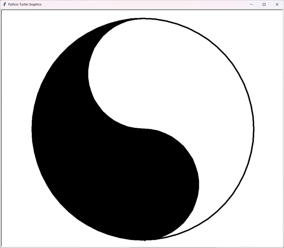运行后,你会看到一幅完整的太极图。