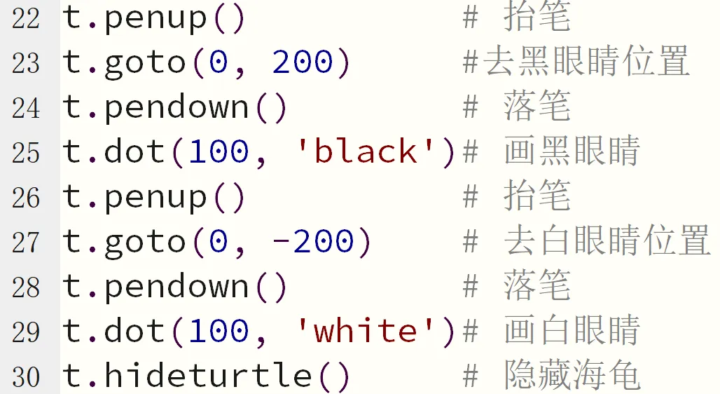 t.goto(0, 200) #去黑眼睛位置