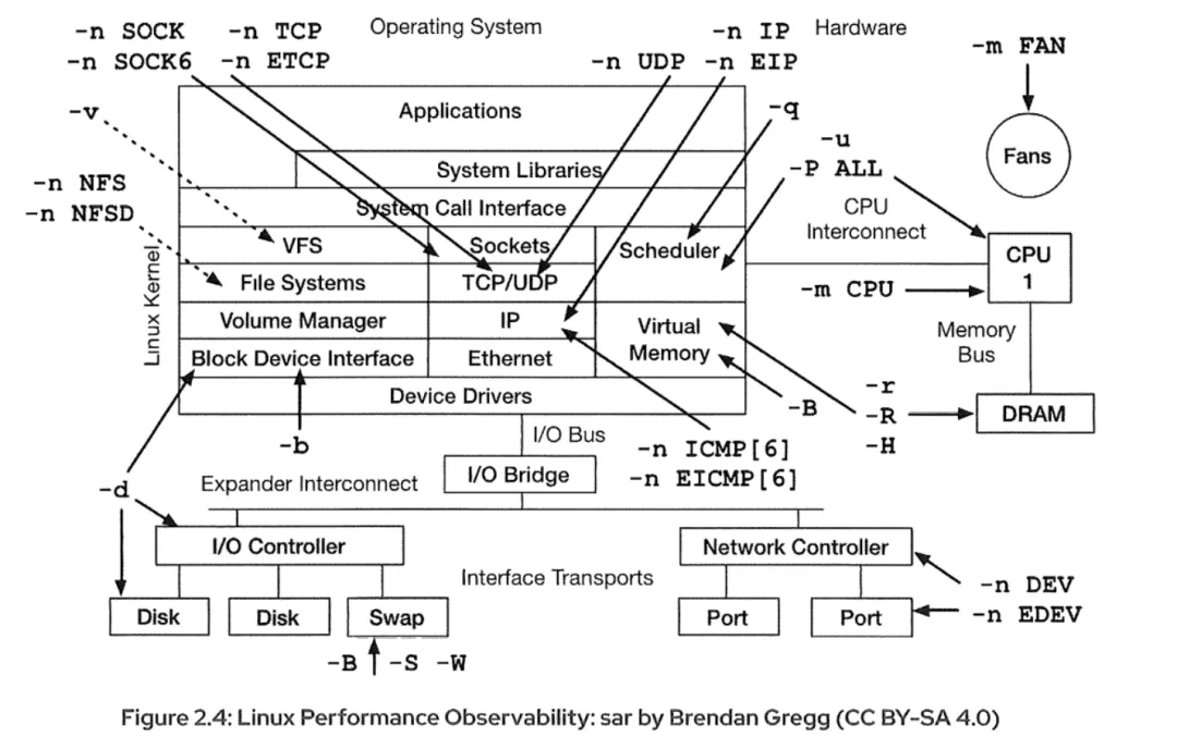 系统活动报告,sar,监控当前的系统活动,并可以配置为存档和报告历史统计。sar命令从内核计数器收集指标,并有一个按预定时间执行的代理来记录系统活动。这个命令也可以用来收集关于系统状态的瞬时数据。