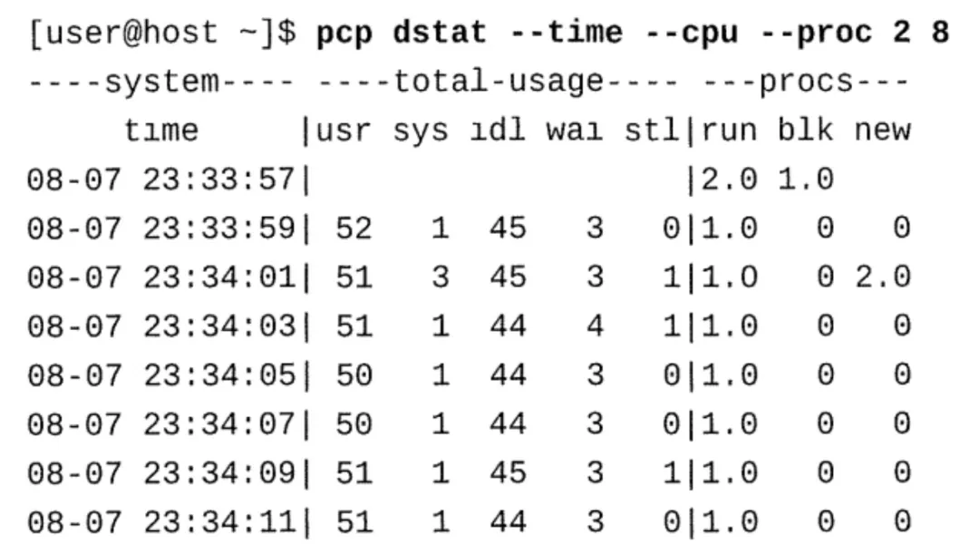 Performance Co-Pilot有一个基于文本的机制,用于查询单独跟踪的指标。要获取存储在 Performance Co-Pilot数据库中的指标列表,请使用pminfo命令。使用带有度量的pmval命令 收集相关数据。 pminfo pminfo-dt proc.nprocs pmval-s 5 proc.nprocs