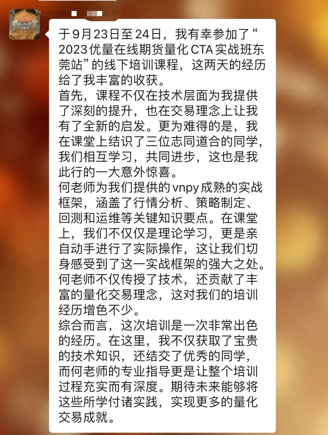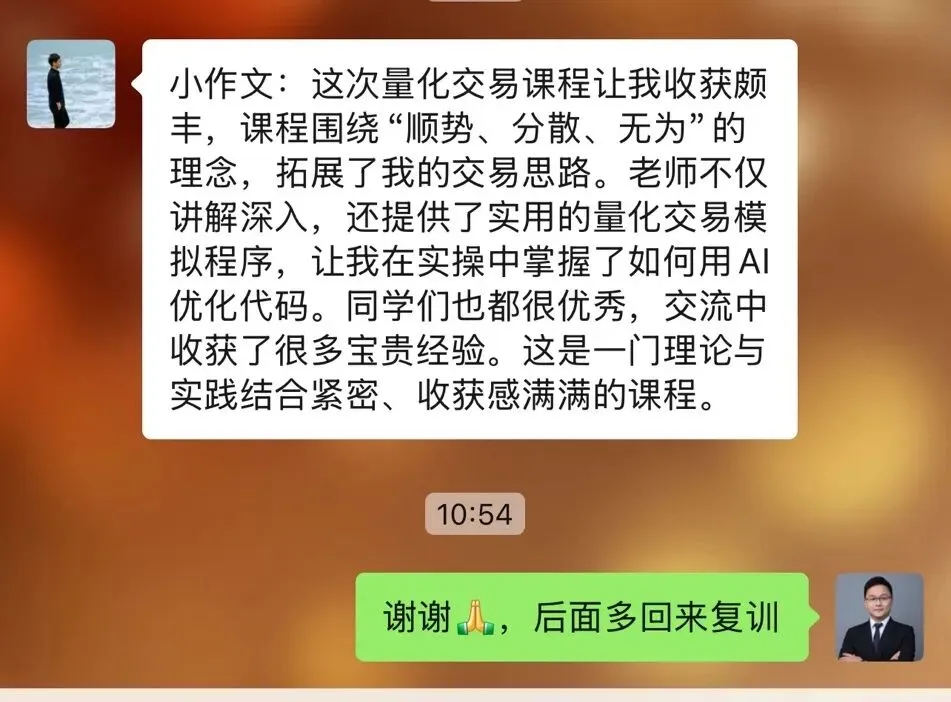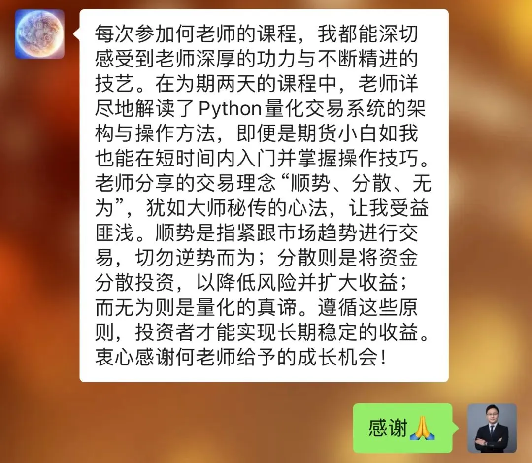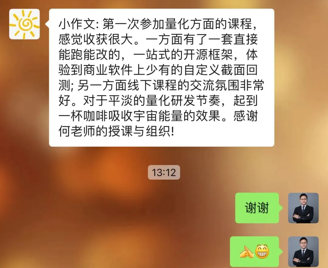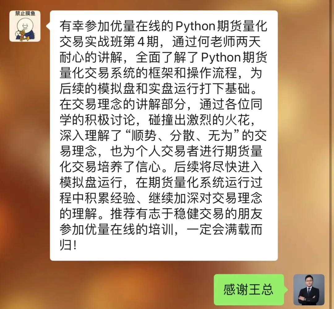 往期学员留言:感恩信任,我们一直致力于为学员提供最好的金融科技服务!