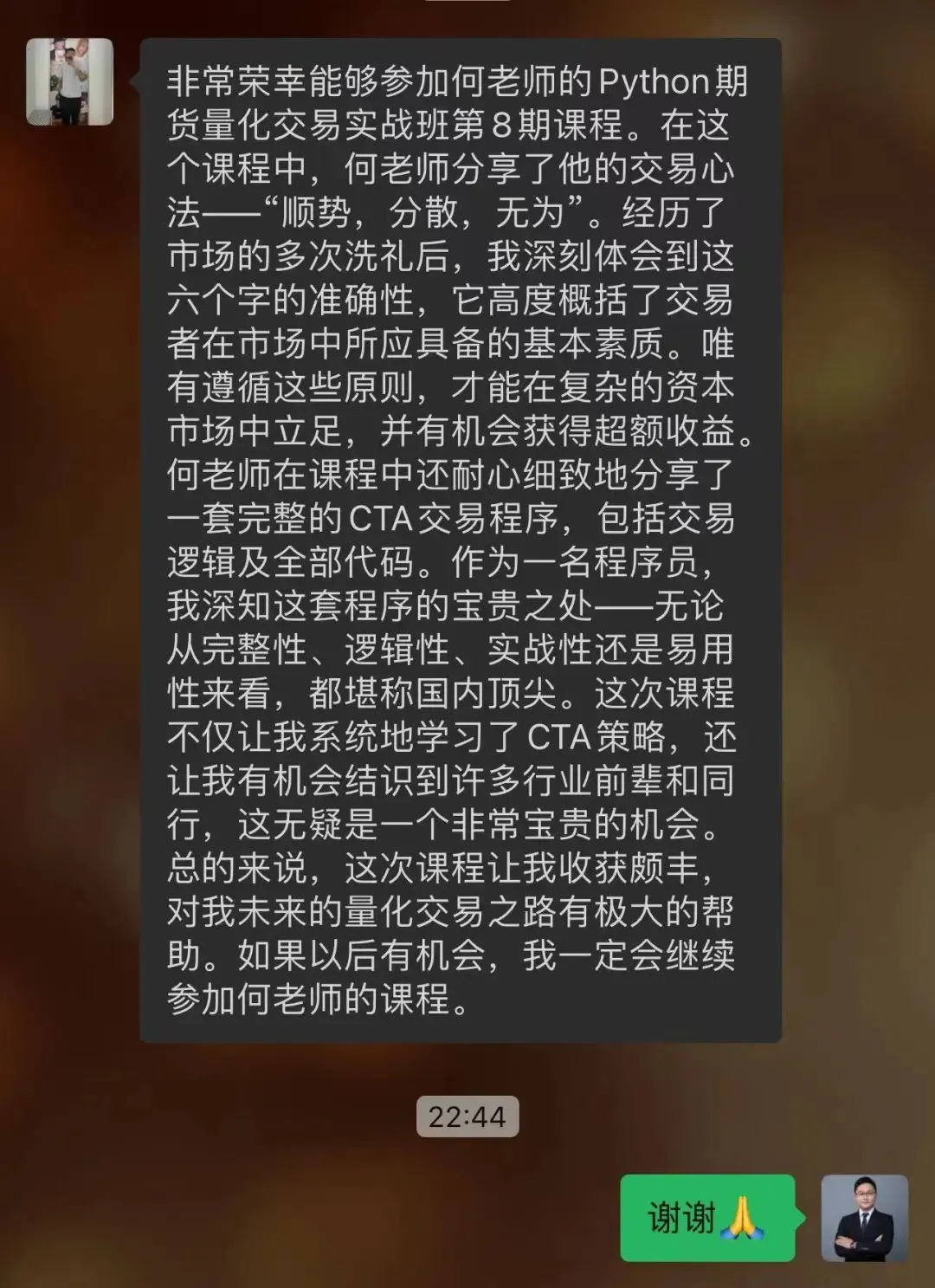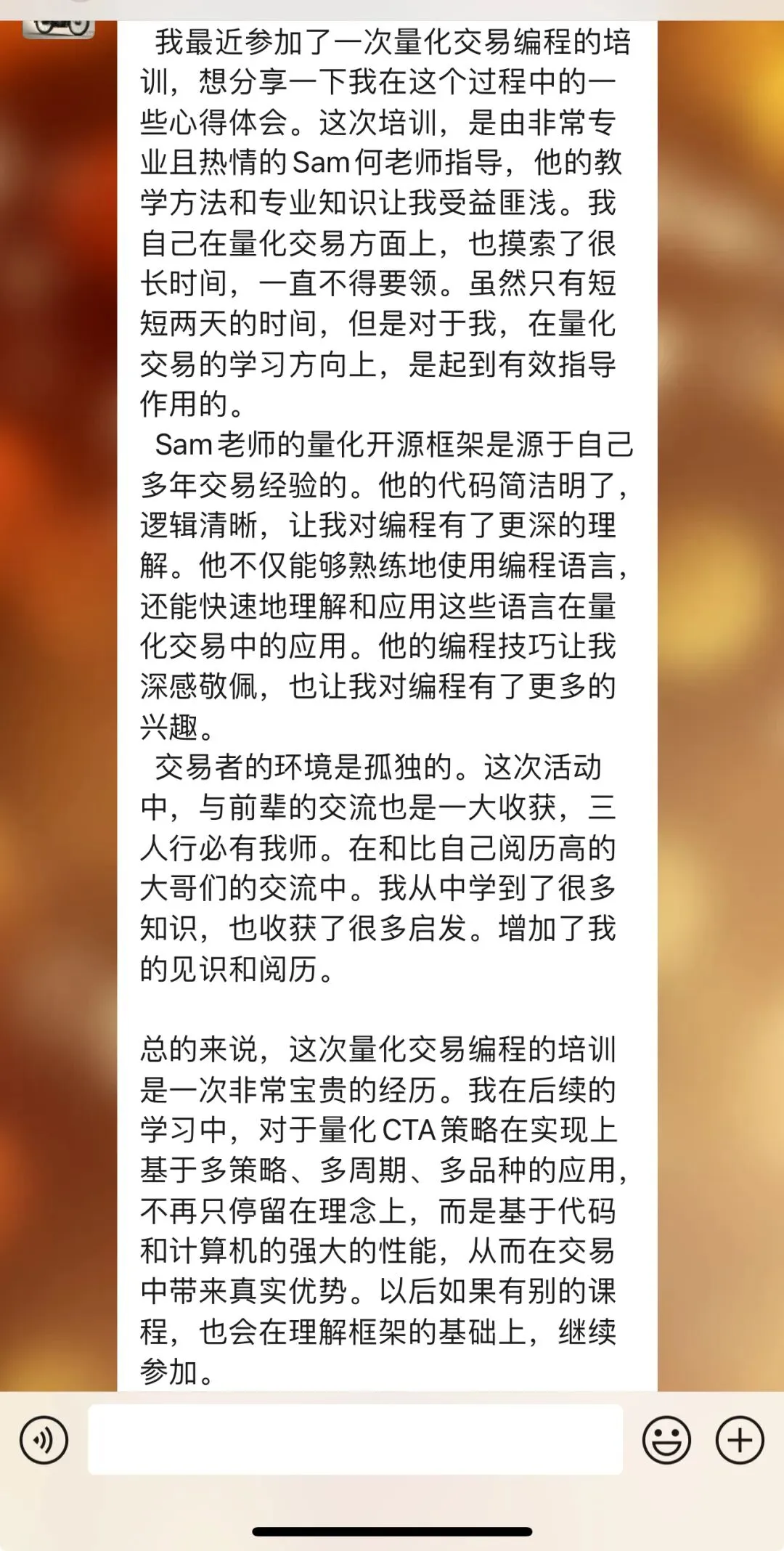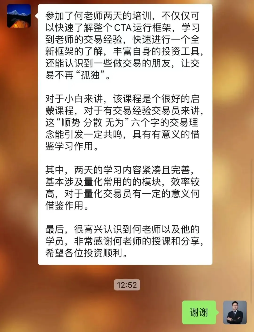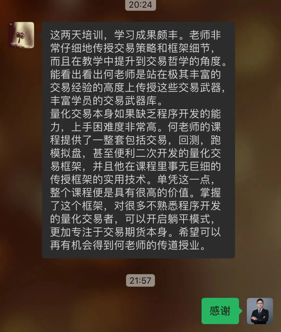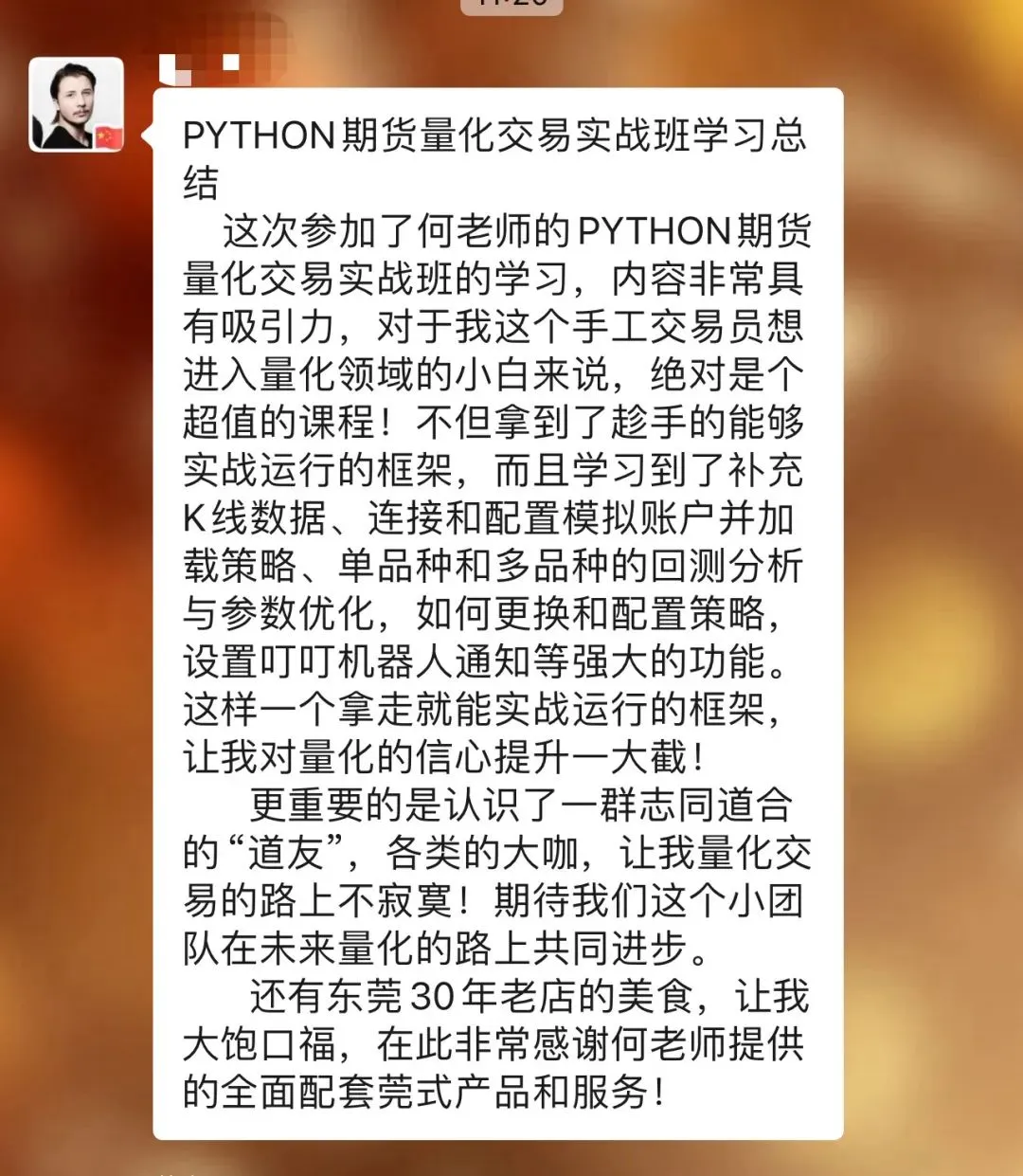 往期学员留言:感恩信任,我们一直致力于为学员提供最好的金融科技服务!