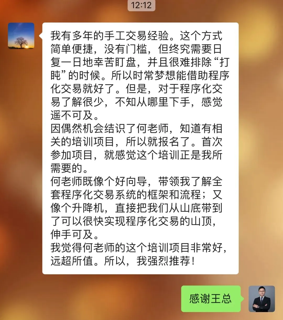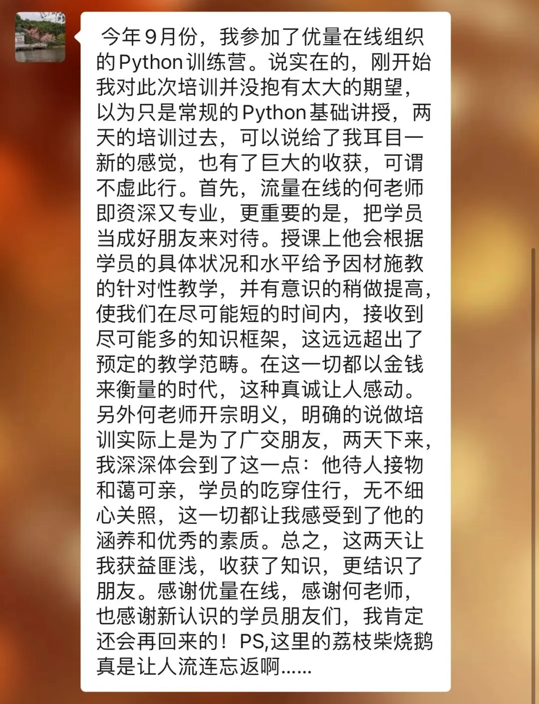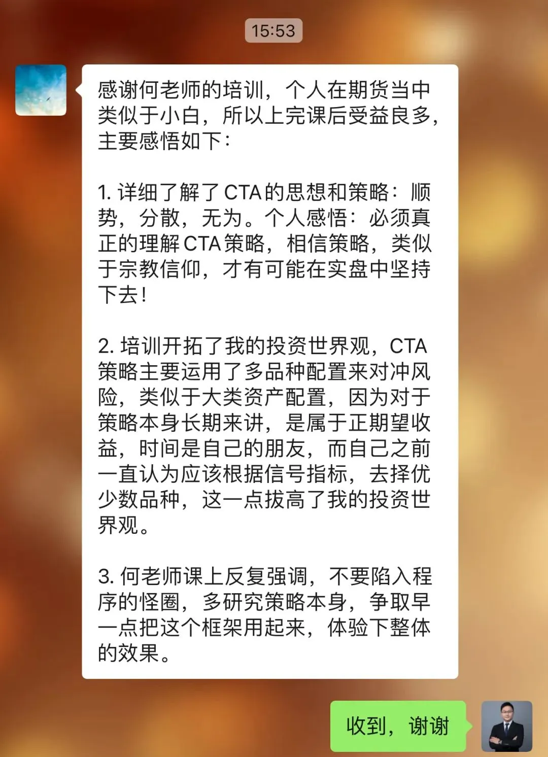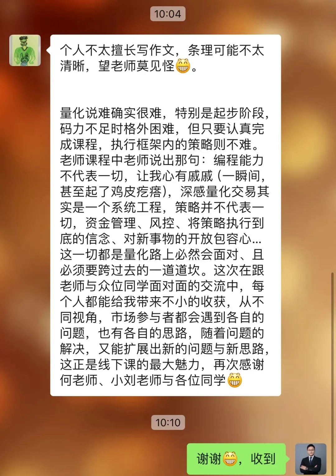 往期学员留言:感恩信任,我们一直致力于为学员提供最好的金融科技服务!