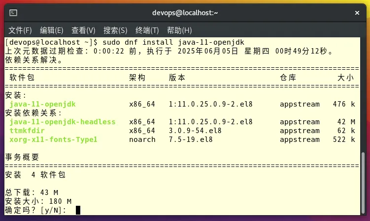 jenkins需要较新版本的 java 来运行,个人建议使用 21,不然使用截图中的 11 也可以sudo dnf install java-21-openjdk -y