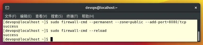 尽管在安装并运行此自动化服务器服务后,我们可以从本地安装的浏览器访问其 Web 界面,但如果你使用的是没用图形界面的 CLI 最小化安装服务器,则需要使用远程系统的浏览器来访问它。为此,必须在 AlmaLinux 防火墙中打开对应的端口 8080 。很多的教程都是一上来就关闭掉防火墙,这样做在公司内部不通外网的环境下问题不大,但是如果你的服务器是云服务器或者是暴露在公网上就不建议关闭防火墙。sudo firewall-cmd --permanent --zone=public --add-port=8080/tcpsudo firewall-cmd --reload