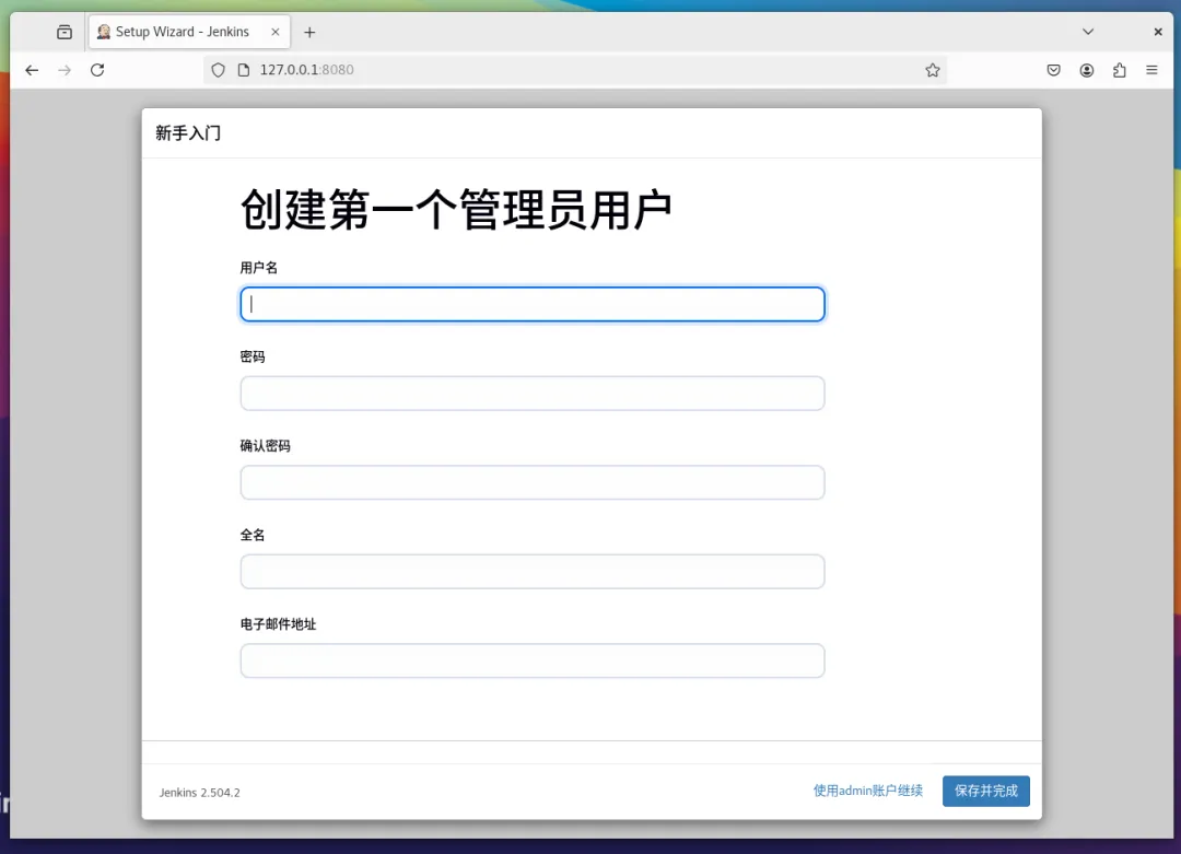 安装完成后,Jenkins 将为管理员用户创建一个密码。该密码被保存在 /var/lib/jenkins/secrets/initialAdminPassword 中,请运行以下命令查看并复制它。sudo cat /var/lib/jenkins/secrets/initialAdminPassword