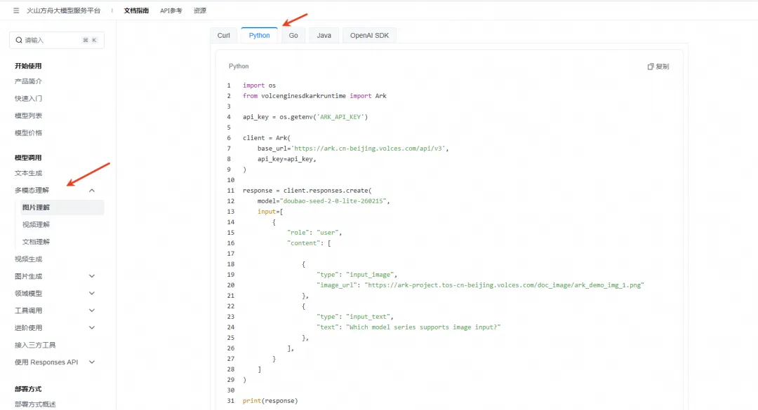 pip install 'volcengine-python-sdk[ark]'