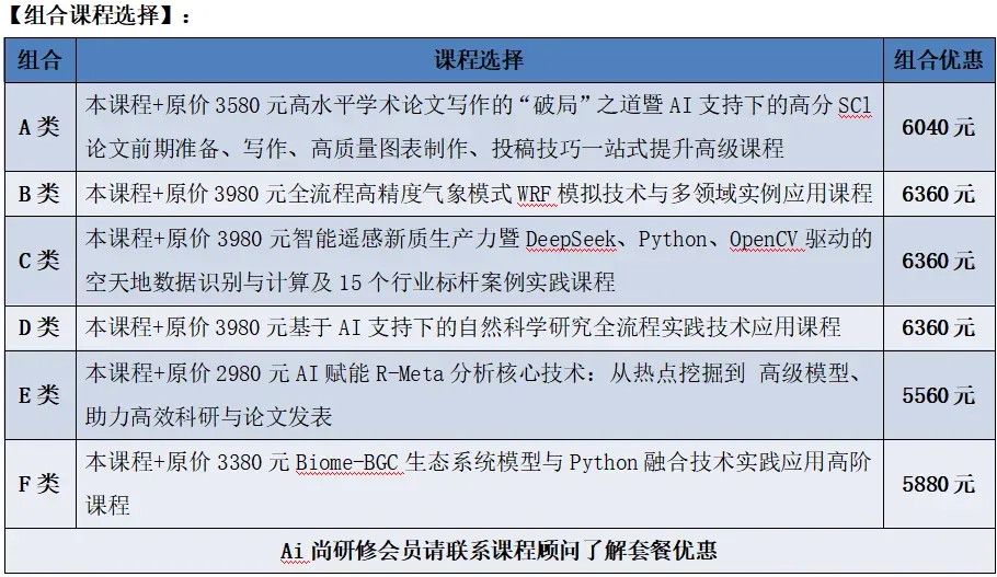 本课程面向地球科学领域研究人员,聚焦Python编程与前沿AI技术的融合应用,解决地球科学研究中的复杂问题。在气候变化与极端天气事件频发的背景下,本课程将传统分析方法与现代AI技术结合,助力研究人员提升数据处理效率与科学发现能力。课程从Python基础快速过渡到Xarray、Dask等专业工具,深入探讨CMIP6气候模拟与WRF区域气象模式的高效处理。核心内容包括AI技术在时空数据处理、多源数据融合、预测模型构建等方面的应用,涵盖时间序列分析、空间统计建模、遥感影像解译与生态系统模拟等关键领域。学员将掌握科研全流程的Python编程技能、AI辅助分析方法与可视化能力,并学习如何将大型语言模型等前沿AI工具融入科研工作流程,实现从数据获取到成果展示的智能化,为地球科学研究注入新动力。1.建立导师助学交流群,长期进行答疑及经验分享,辅助学习及应用;