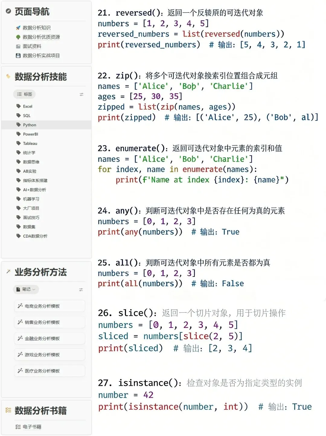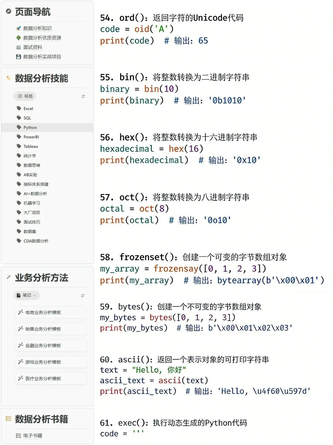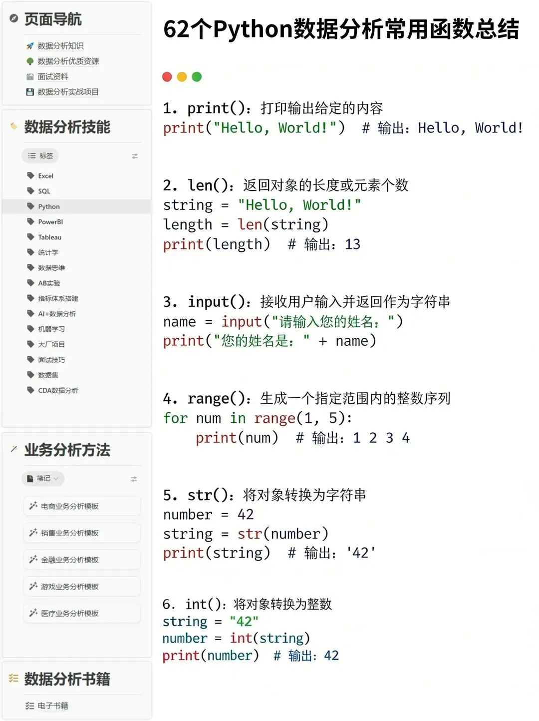 >代码速查!62个数据分析常用Python函数总结