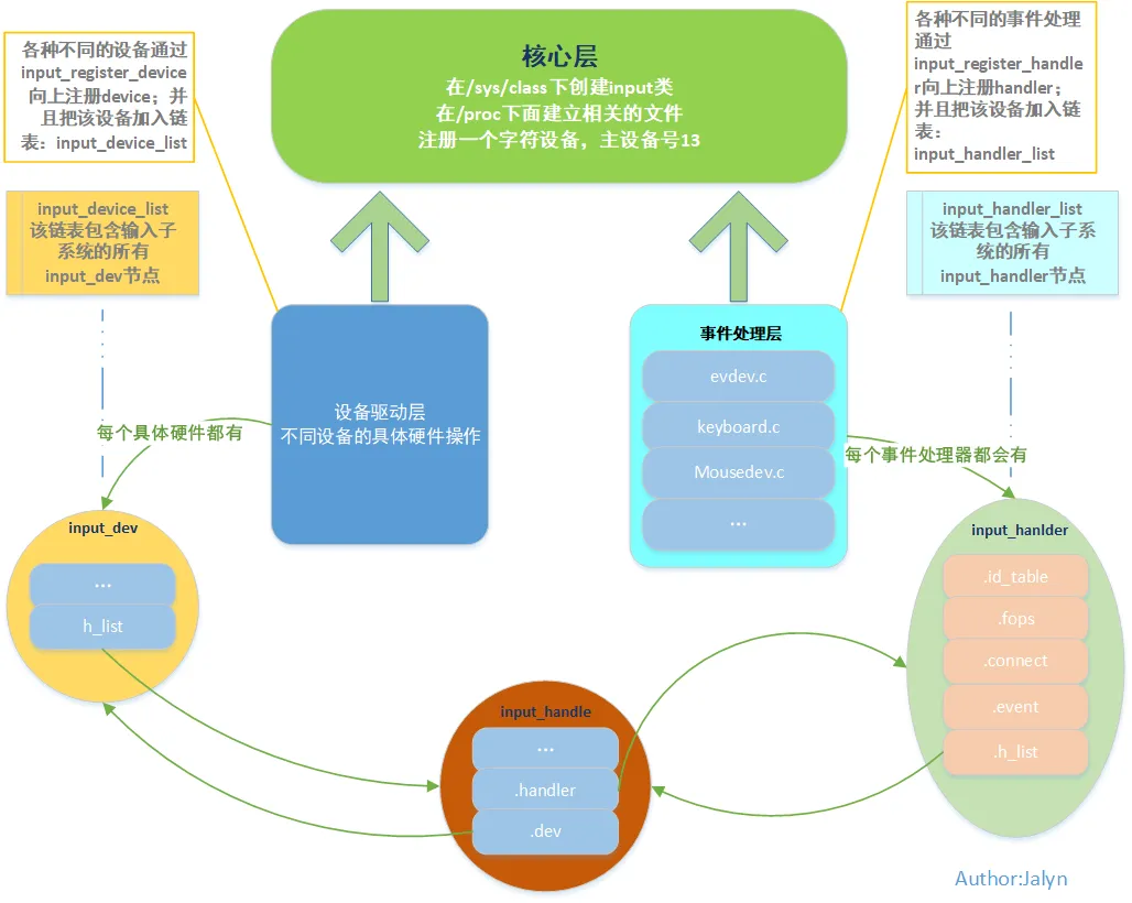 /dev/input/eventX)。先熟悉核心层最核心的几个数据结构,理解它们才能看懂流程:
