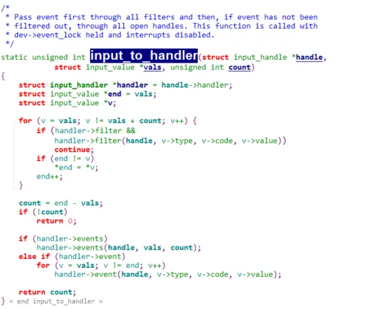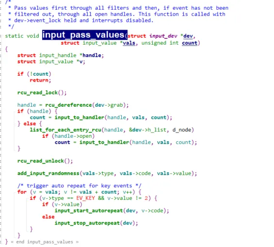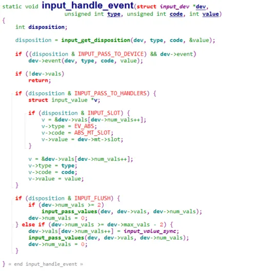 staticvoidinput_handle_event(struct input_dev *dev,unsigned int type, unsigned int code, int value)