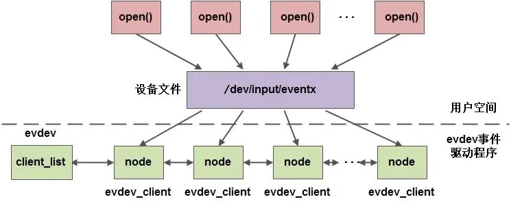 比如evdev_open函数代表注册一个client,此后准备接收数据。