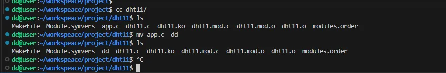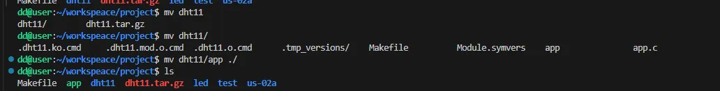 Makefile Module.symvers app app.c dht11.c dht11.ko dht11.mod.c dht11.mod.o dht11.o modules.order等文件