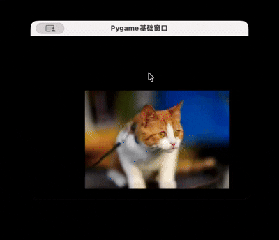 # 思路:加载一组连续的动画帧,循环切换显示# 1. 加载动画帧(假设我们有3张猫的图片:cat-1.png、cat-2.png、cat-3.png)cat_frames = [pygame.image.load("cat-1.png"),pygame.image.load("cat-2.png"),pygame.image.load("cat-3.png")]frame_index = 0 # 帧索引,控制切换clock = pygame.time.Clock() # 控制帧率while running:clock.tick(10) # 每秒切换10帧,避免动画太快# 绘制当前帧screen.blit(cat_frames[frame_index], (100, 100))# 切换帧索引,循环播放frame_index += 1if frame_index >= len(cat_frames):frame_index = 0for event in pygame.event.get():# 点击窗口关闭按钮,退出游戏if event.type == pygame.QUIT:running = False # 结束主循环pygame.quit() # 退出Pygameexit()# 其他事件处理、窗口更新代码...pygame.display.update()