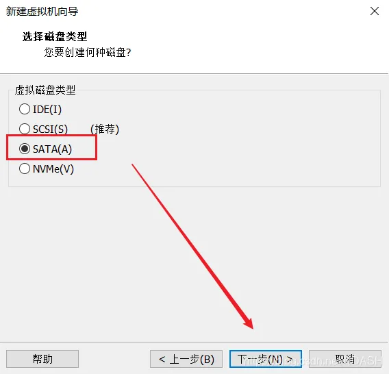 2、磁盘类型选择“SATA”