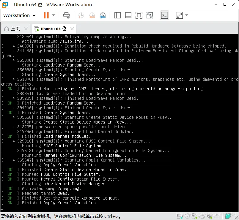 前面操作没问题的话,系统镜像就正常被启动起来了。