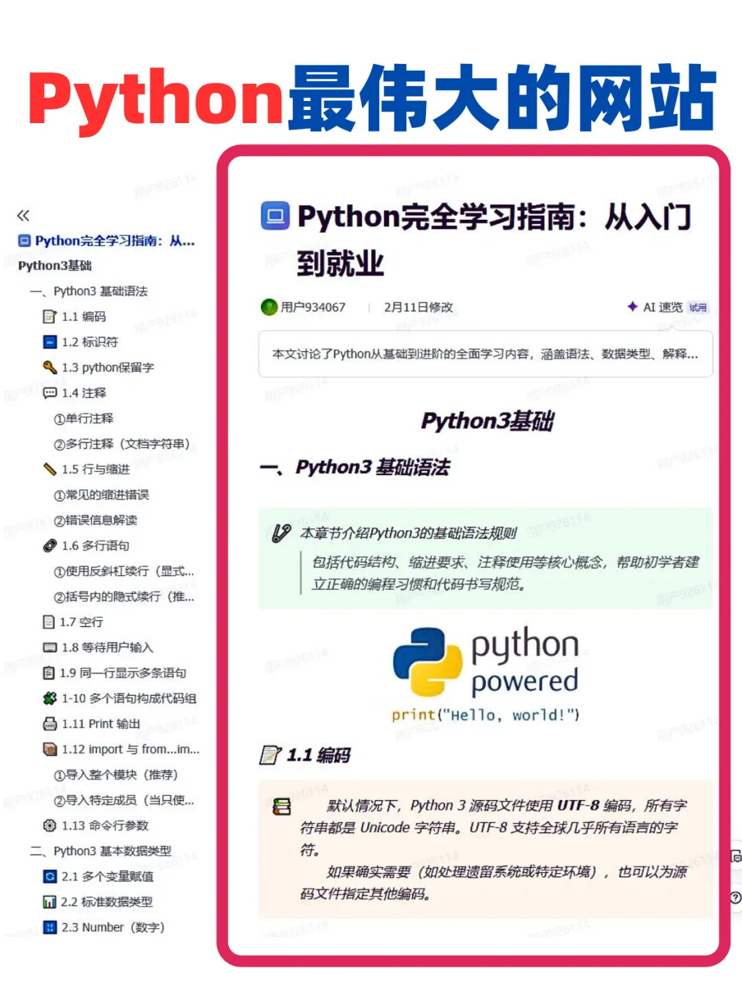 今天就给大家整理了一个Python超强学习网站 刷爆它你的Python就🐮了!