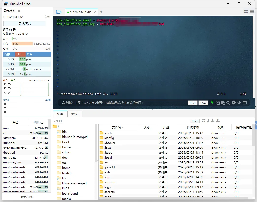 dns_cloudflare_email = 你的邮箱地址dns_cloudflare_api_token = 你的CloudflareToken