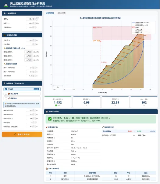 已知某项目施工便道地处湿陷性黄土地区,其路堑挖方高度较大,自主设计的边坡坡率1:0.5,平台宽度1米,为验证其稳定性: