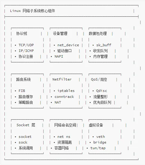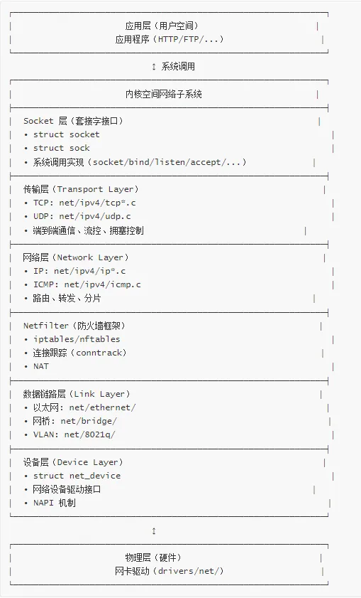 网络子系统是 Linux 内核最复杂的子系统之一,但只要掌握了核心概念和数据结构,就能逐步深入理解其实现细节。