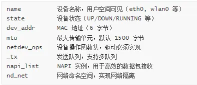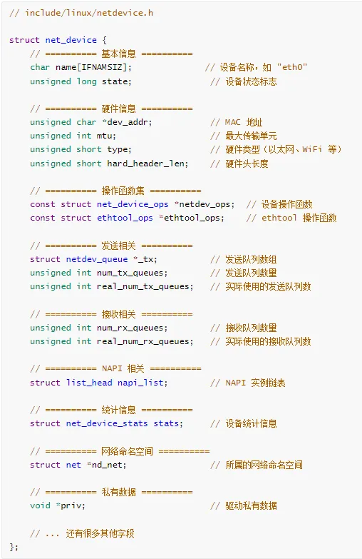 这是网络子系统中最重要的结构之一,代表一个网络设备(网卡)。