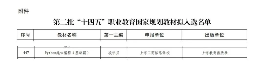 喜报 | 我校《Python趣味编程(基础篇)》教材入选“十四五”职业教育国家规划教材!