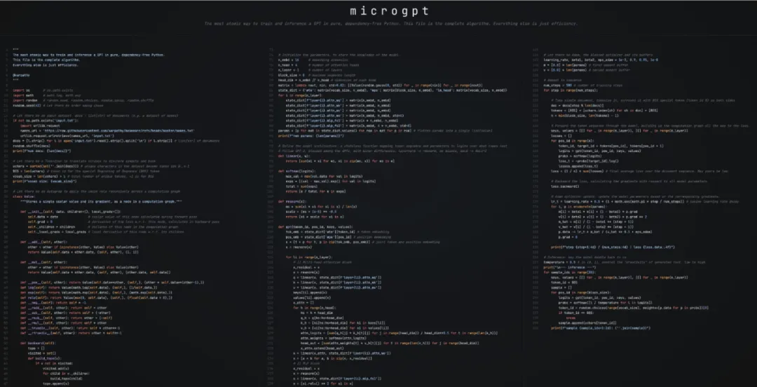 今天给大家分享一个超级牛的项目!有人只用了不到 200 行 Python 代码,就把 GPT 最核心的运作机制给复现出来了,而且还能跑起来看到效果。