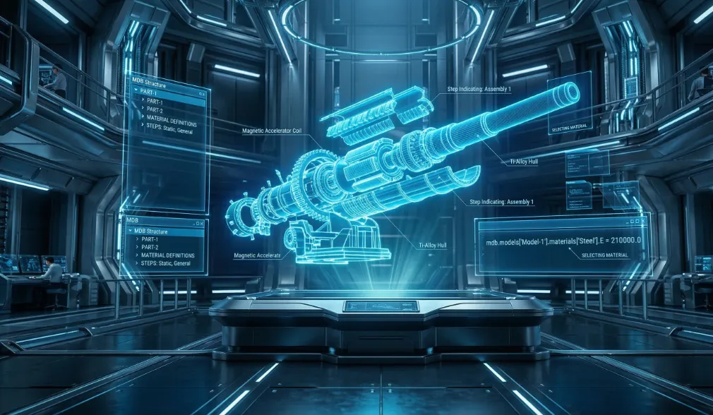 1. Mdb (Model Database) —— 造物主的“绝密图纸”Mdb(模型数据库) 对应着你保存在电脑上的 .cae 文件。当你导入 mdb 时,你调用的是前处理 API。这里包含了 parts(零件)、materials(材料)、steps(分析步) 等所有构建物理世界的元素。