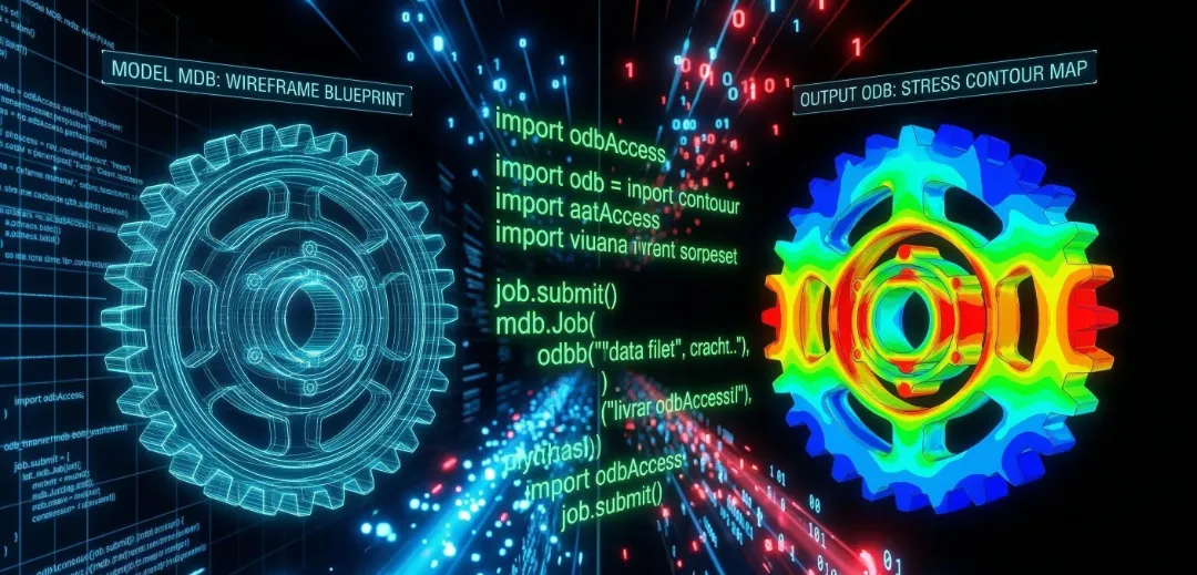 答案是 Job(作业)。在 Mdb 中,我们用 `mdb.Job(...)` 创建一个计算任务。当调用 `job.submit()` 时,Abaqus 的求解器(Kernel)就会把 Mdb 里的图纸翻译成 `.inp` 文件,然后一顿狂算,最终生成那个装满数据的 `.odb` 文件。