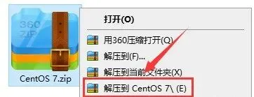 1.选中下载的【CentOS 7】软件压缩包,鼠标右击选择【解压到CentOS 7】。