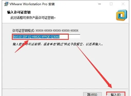 12.输入:【AA510-2DF1Q-H882Q-XFPQE-Q30A0】,然后点击【输入】。