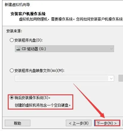 17.选择【稍后安装操作系统】,点击【下一步】。