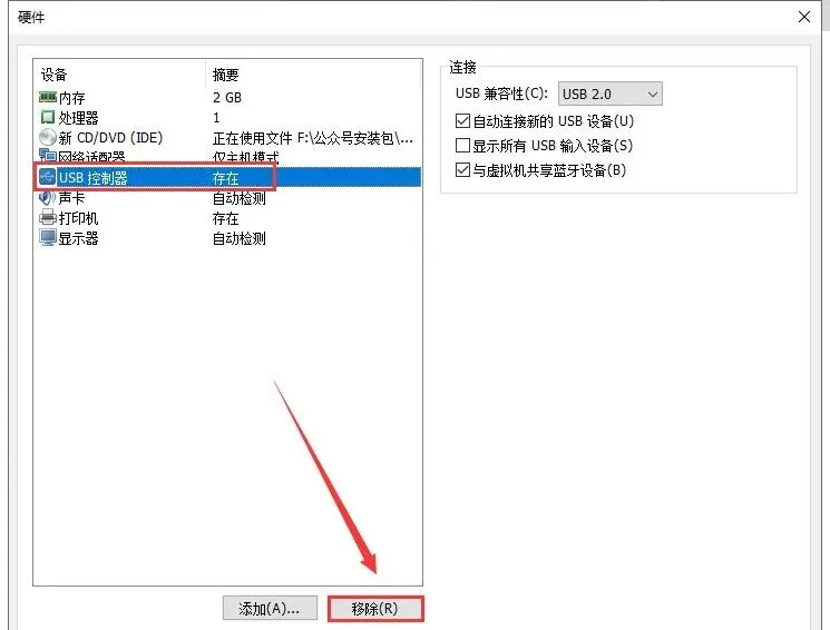 26.选中【USB控制器】,然后点击【移除】。