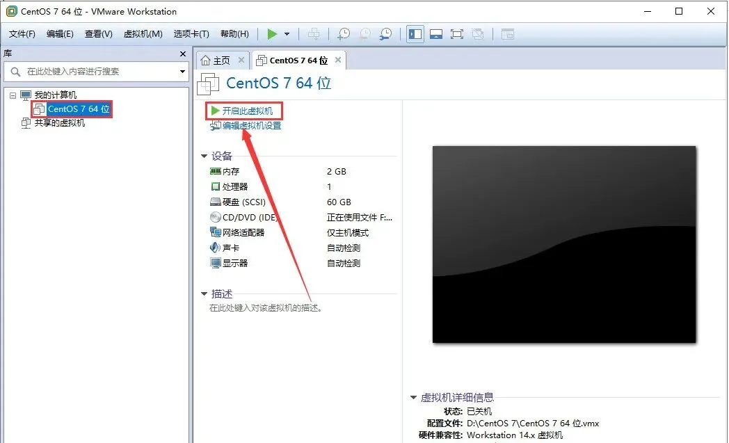 29.选中【CentOS 7 64位】,然后点击【开启此虚拟机】。