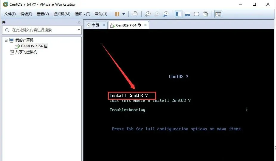 30.用键盘上的上下箭头,选择【Install CentOS 7】,然后按键盘上的回车【Enter】键。