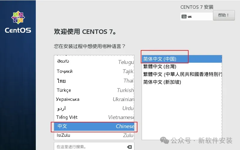 32.选择【中文】,然后点击【继续】。