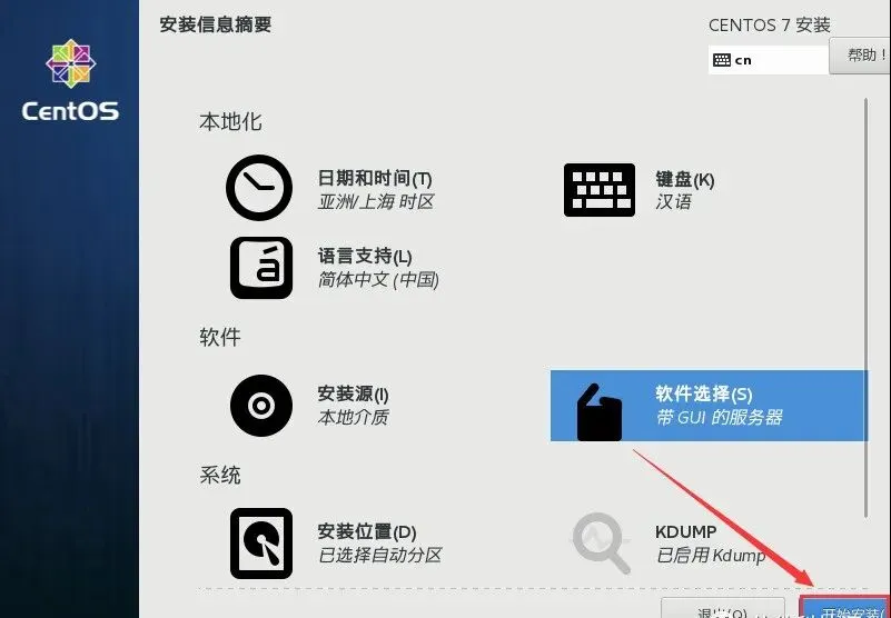 55.点击【开始使用 CentOS Linux】。