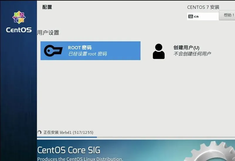 42.CentOS 7正在安装中,稍等一会儿。
