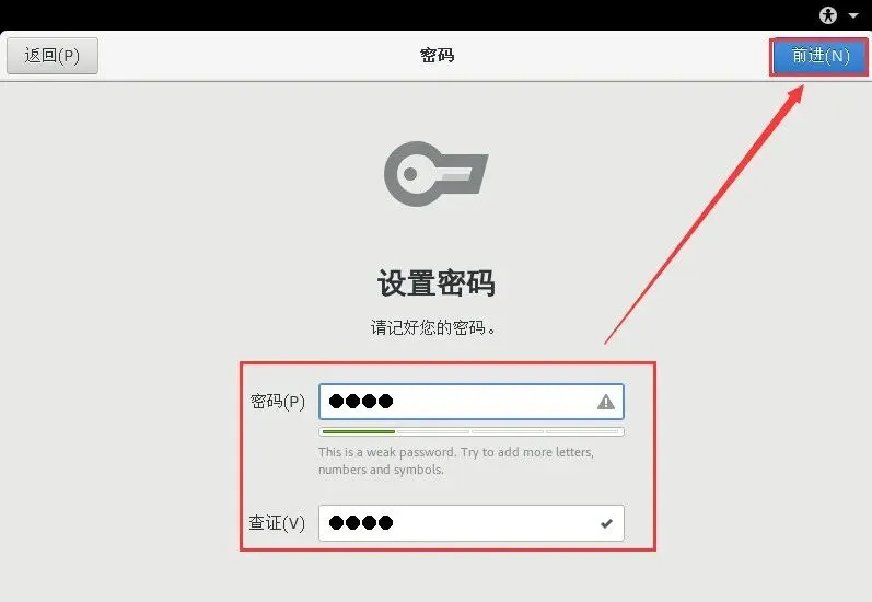 54.设置本地账户的密码,然后点击【前进】。