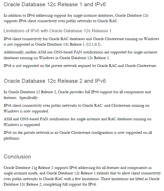 Oracle的11g单实例支持ipv6但rac不支持。