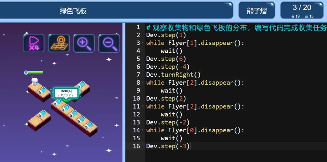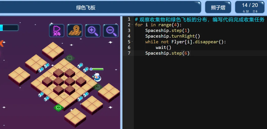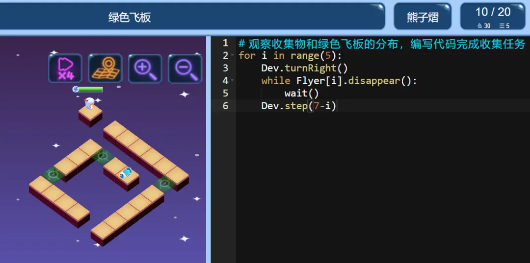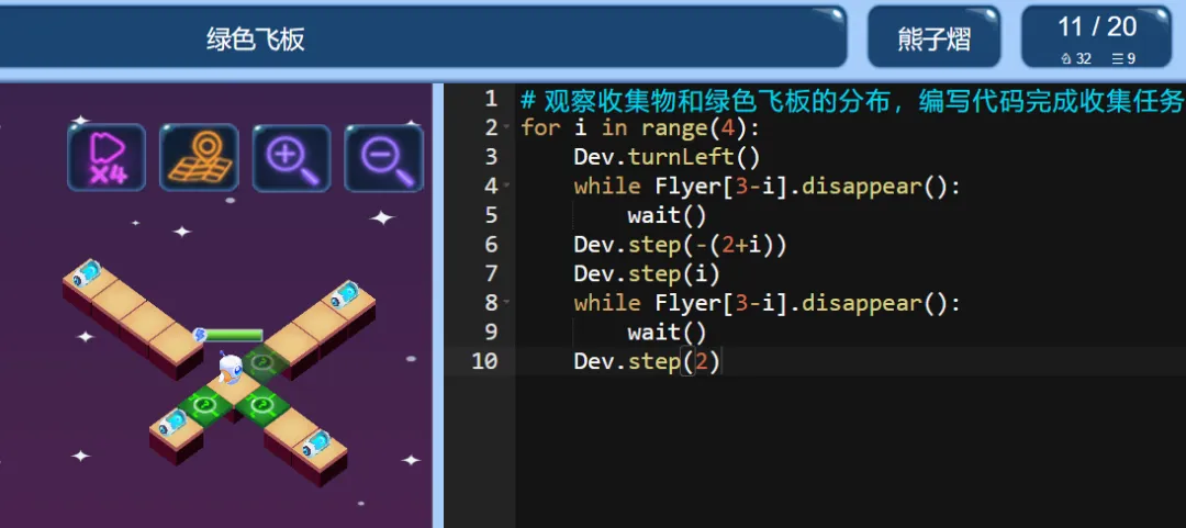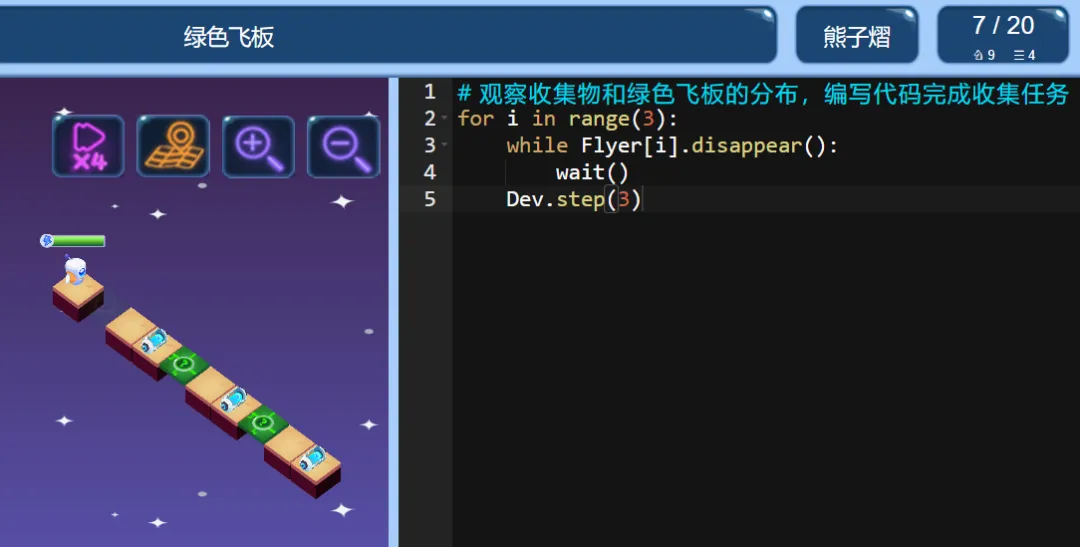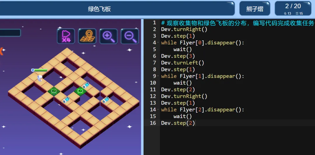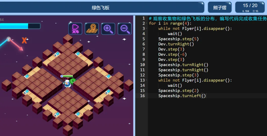 ICode Python 四级训练场 绿色飞板(1)
