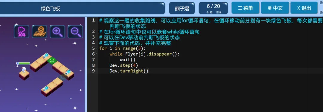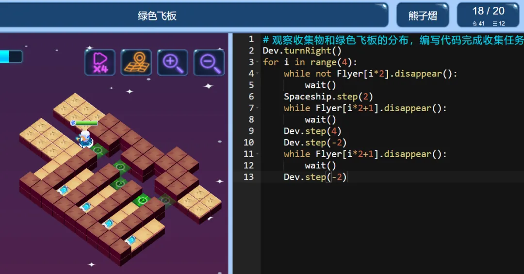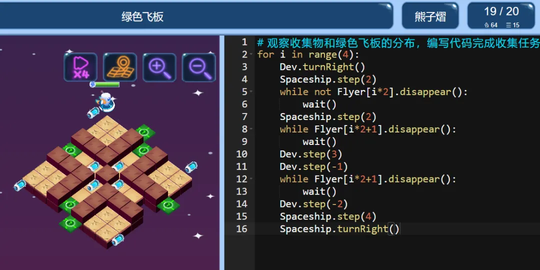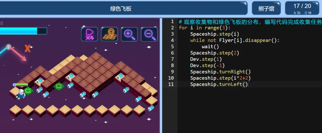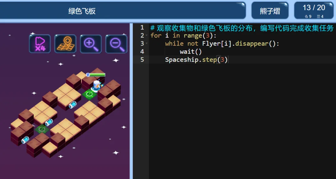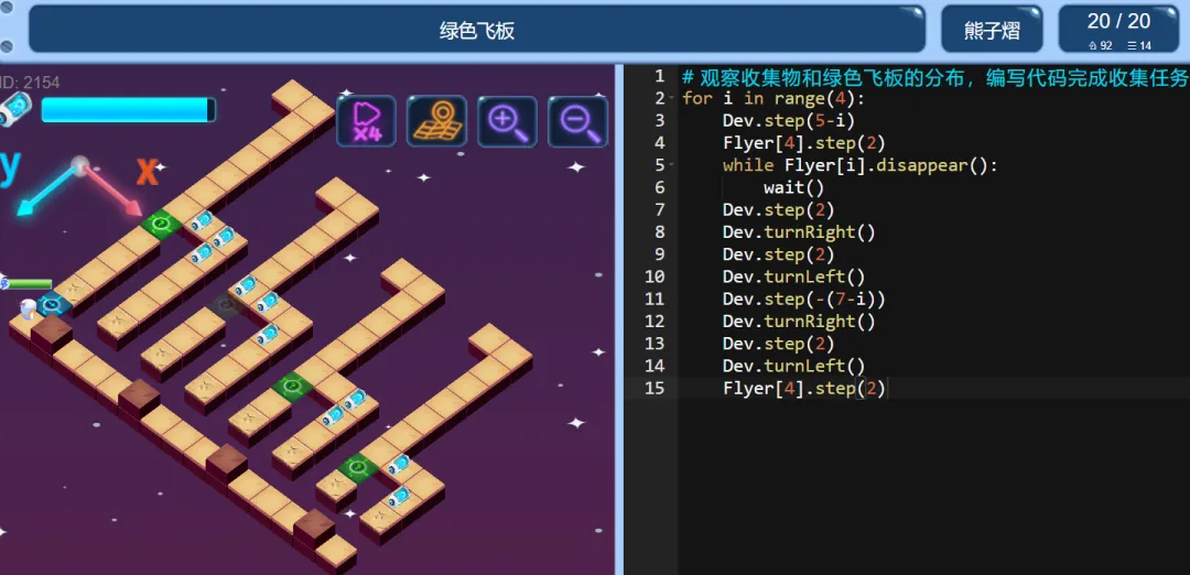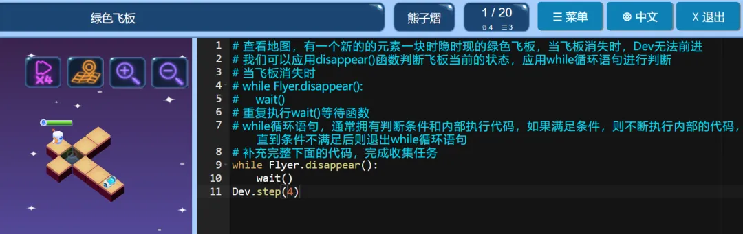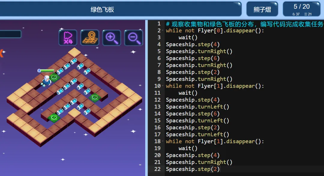 ICode Python 四级训练场 绿色飞板(1)
