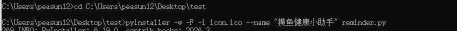 pyinstaller -w -F -i icon.ico --name "摸鱼健康小助手" reminder.py