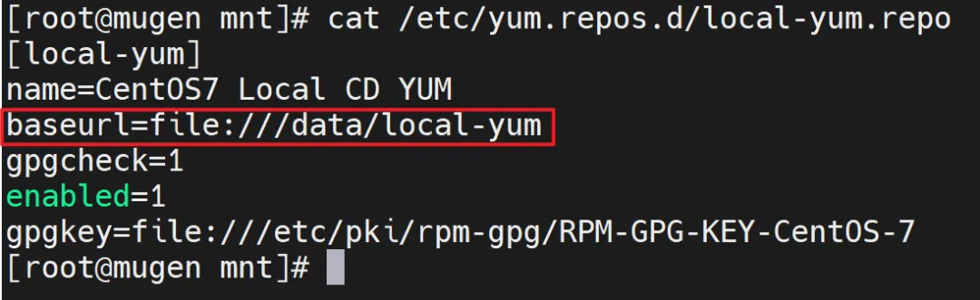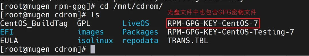 配置中指定的密钥文件路径 /etc/pki/rpm-gpg/RPM-GPG-KEY-CentOS-7 通常会在系统安装时自动生成。如果该文件不存在,可以从光盘中复制过来或指向本地ISO挂载点: