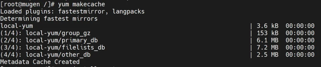 保存退出后,再次执行yum clean all && yum makecache更新缓存,永久本地YUM仓搭建完成!